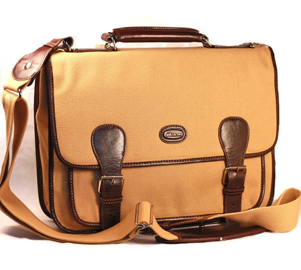 For something a bit trendier, check out Hansson's stylish business bag, which is trimmed with brown bull hide leather. The thick canvas bag is lined in plaid, offers numerous storage options and comes with a fabric and leather shoulder strap.