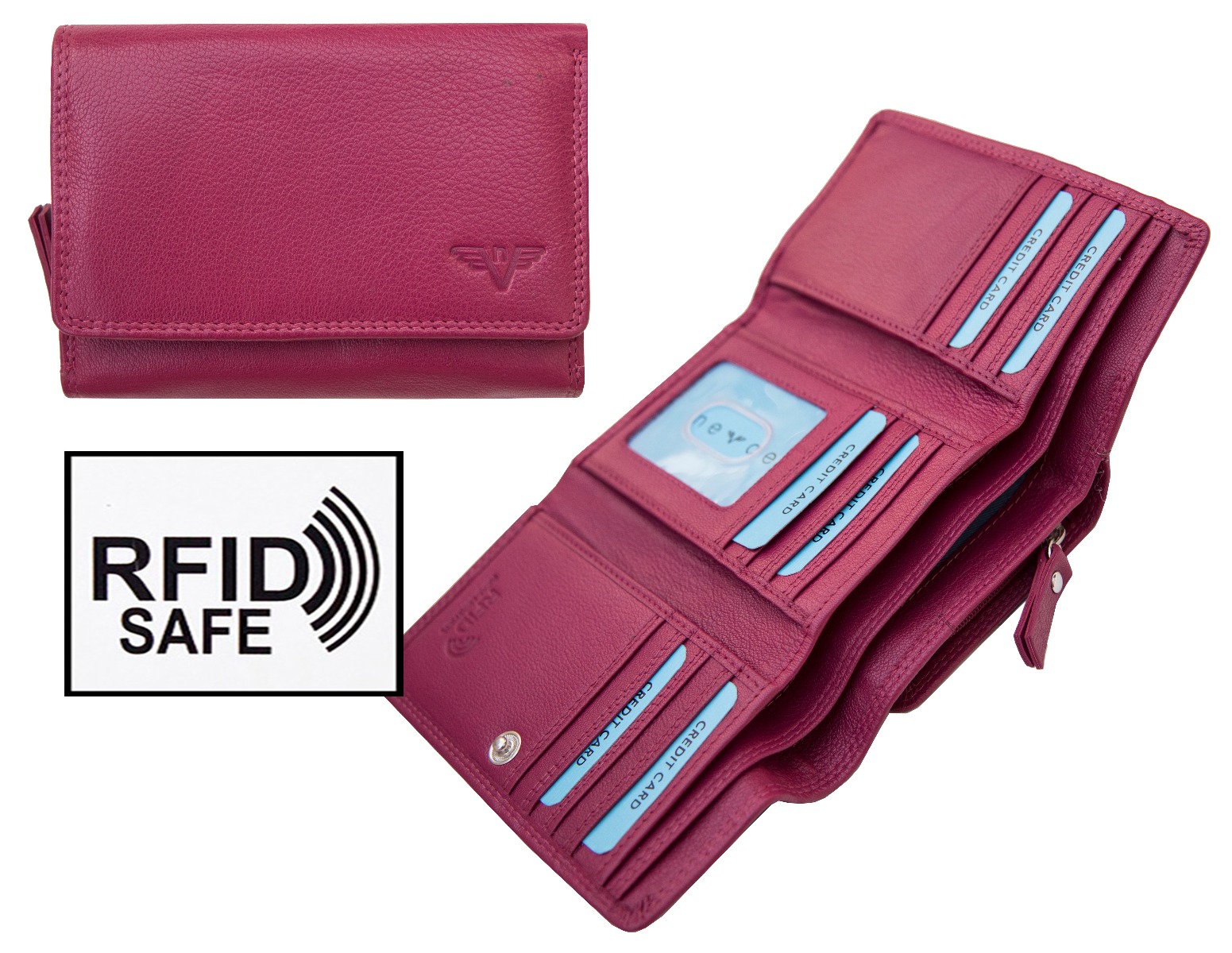 Of course, security is paramount to the Nevaeh brand and you can expect your valuables to remain completely safe and well protected thanks to the innovative RFID blocking design and integrated zippers or poppers which keep your notes, coins and receipts firmly in place.