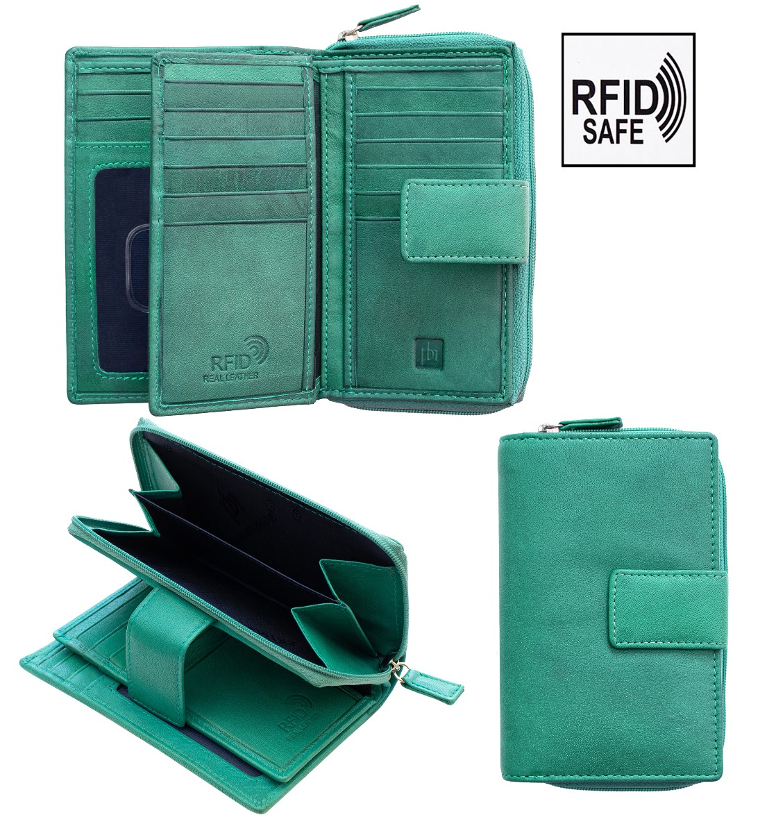 Although the trifold purse is very attractive, it’s also practical too. Inside you’ll find a combination of card slots, transparent ID pockets and larger note pockets. This section is fastened with a popper while the separate two-compartment coin purse has a zipper for security. The whole purse benefits from RFID protection to guard against fraud.