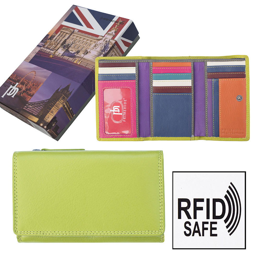 You can choose from a wide range of colour schemes, including our black purse with a pink exterior, which looks relatively understated from the exterior, but opens up to reveal a spectrum of blue and purple shades. Perhaps you’d prefer something more striking? Why not consider the lime green colour? No matter what option you go for, exceptional levels of quality are guaranteed and all purses are RFID safe, so your cards will be safe and sound too.