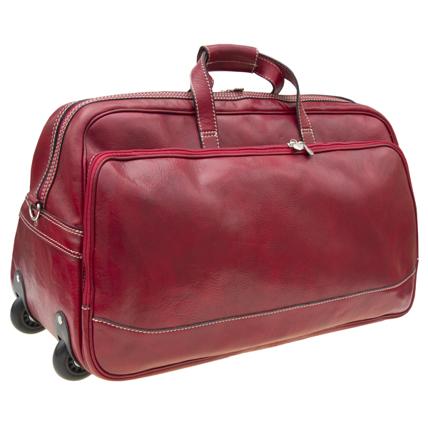 Kenneth Brownne Italian Luxury Red Leather Travel Trolley Wheeled Travel Bag